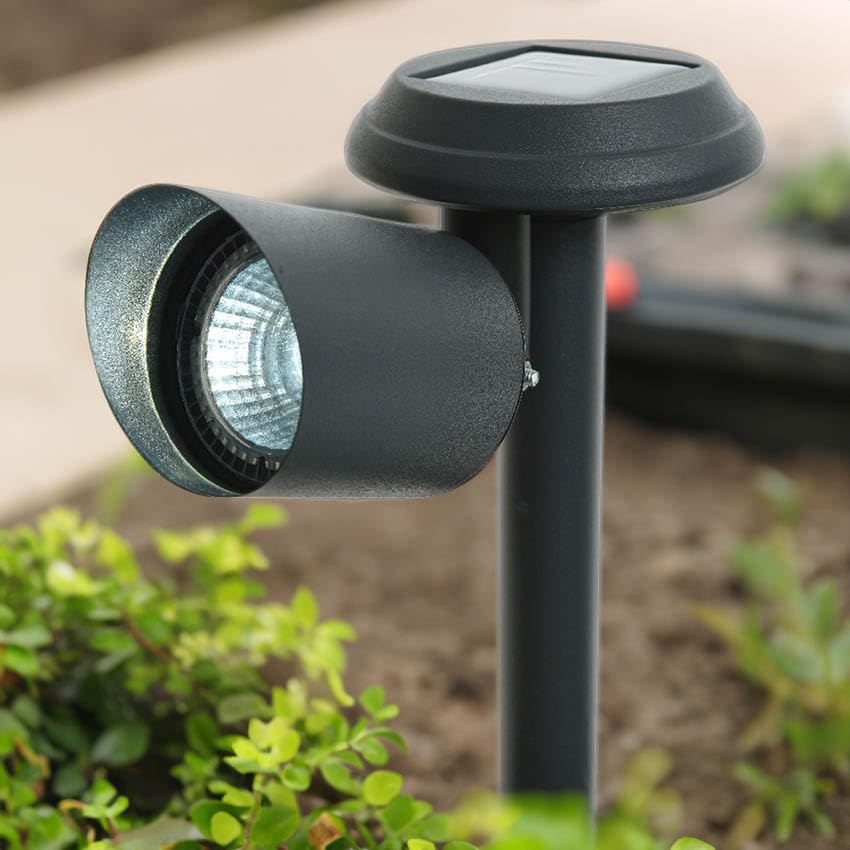 • [estaca de jardín] con [proyector solar led] 3 lm 6400k, [iluminación funcional] (45°). [dimensiones compactas] 10x17x25,5 cm, [calidad y seguridad] garantizadas.